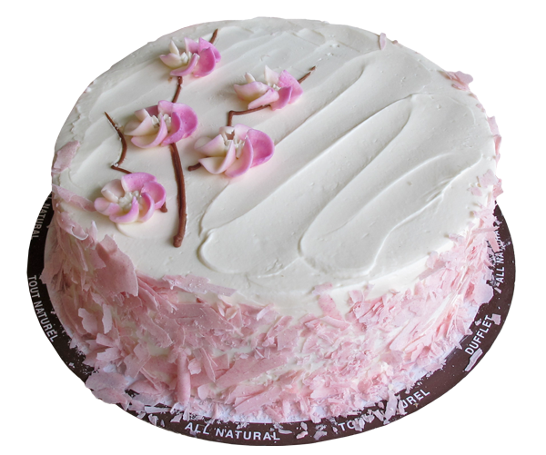 Buttery Golden vanilla cake topped with vanilla bean icing; decorated for Valentines’ Day.