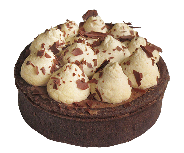 Salted caramel and creamy milk chocolate ganache inside a dark chocolate crust; garnished with whipped cream.